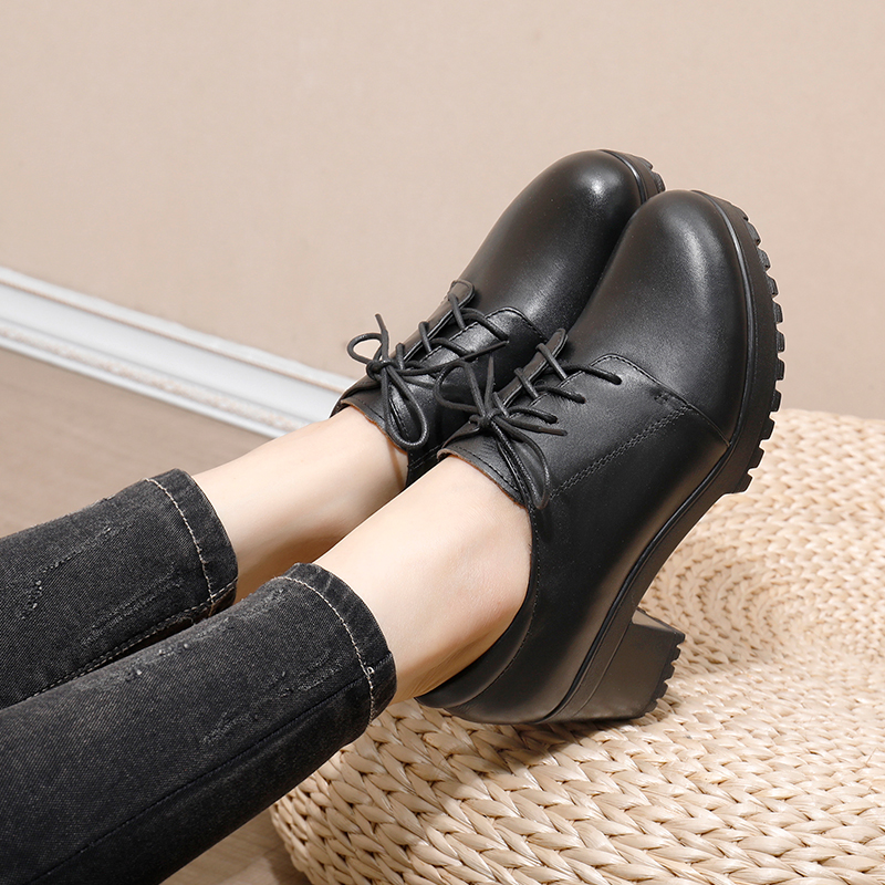 2025新款春秋中跟女鞋深口真皮百搭绑带粗跟单鞋圆头防水台厚底6