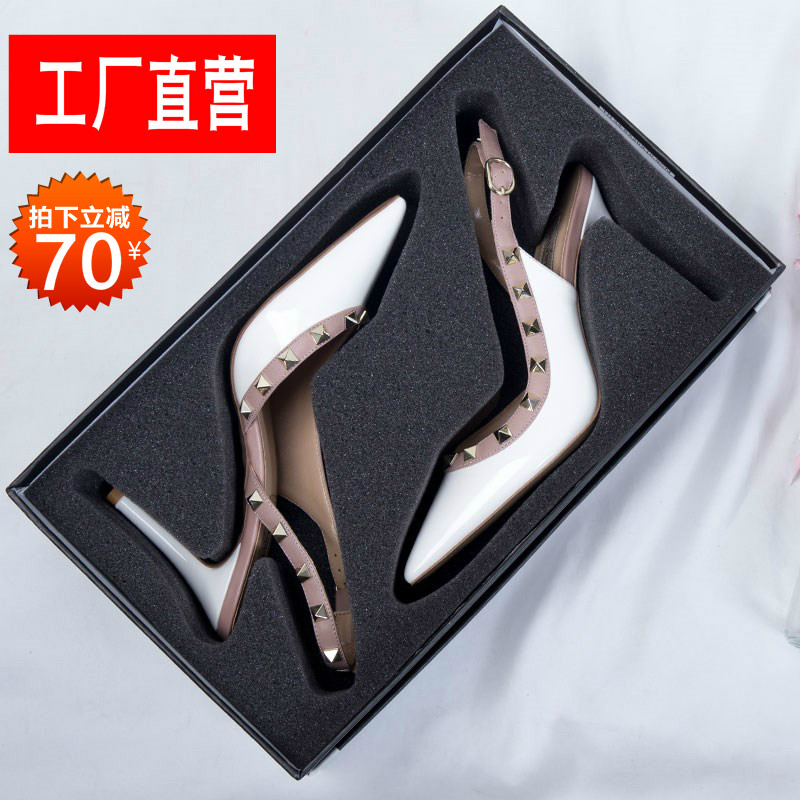 铆钉高跟鞋女尖头细跟百搭性感单鞋2021夏季包头绑带柳丁凉鞋中跟