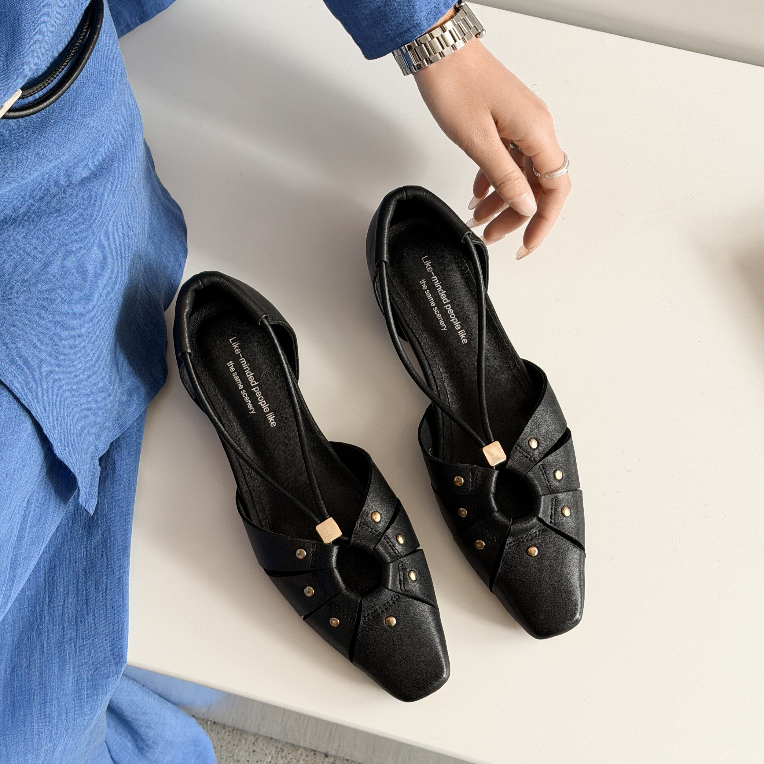 - 方扣尖头单鞋女