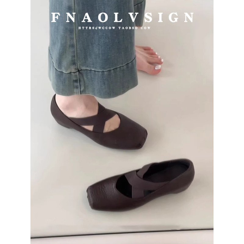 法式交叉绑带芭蕾中跟单鞋方头绝美不累脚穆勒鞋粗跟包头半拖鞋女