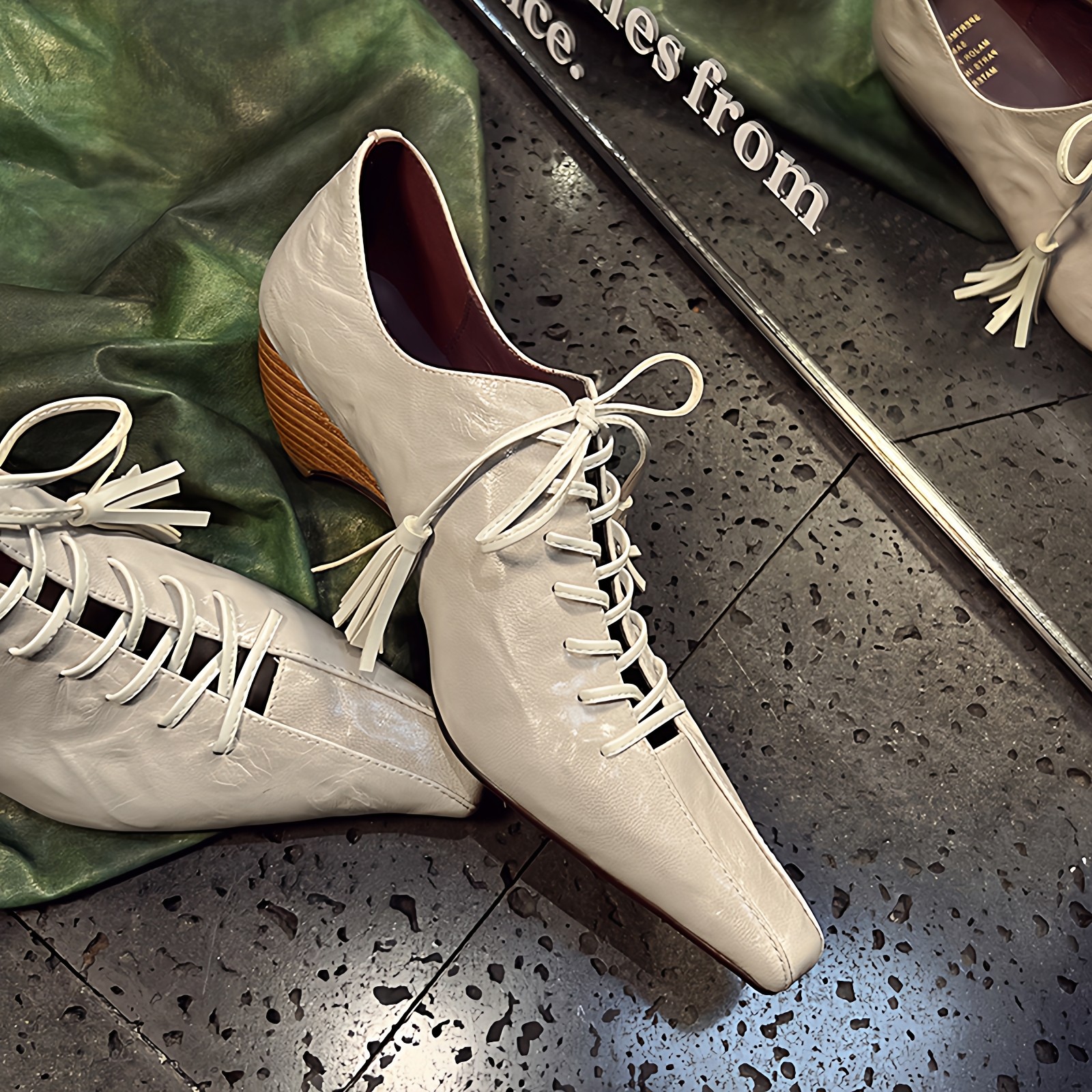 强推 Vintage复古小方头显瘦修腿绑带单鞋中跟女鞋单鞋真皮羊皮
