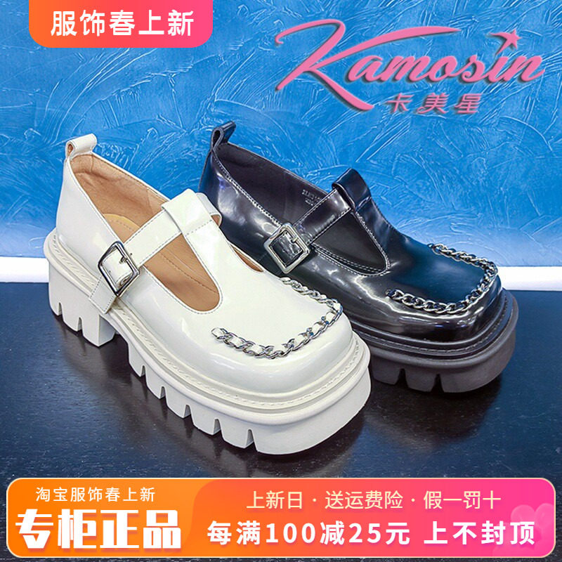 正品卡美星女鞋促销春季新款粗跟中跟丁字绑带单鞋KLZ31GC0901