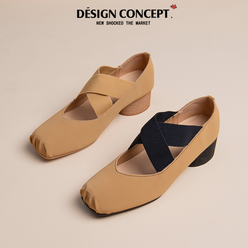 Hunnz 中跟猪鼻子芭蕾舞鞋2025复古松紧带单鞋女交叉绑带方头浅口