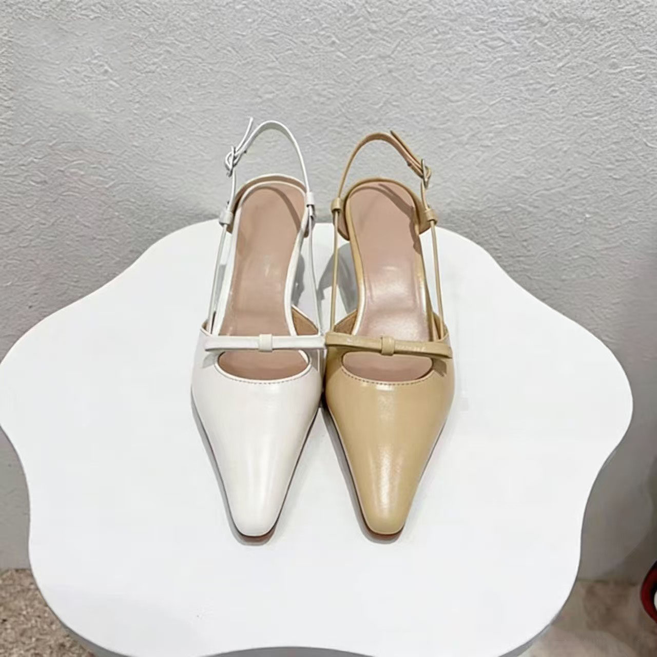 - 蝴蝶结高跟鞋细跟尖头 浅口