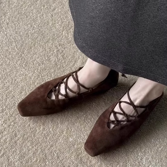 盛先生|2025中跟猪鼻子芭蕾舞鞋复古单鞋女交叉绑带方头芭蕾鞋W1