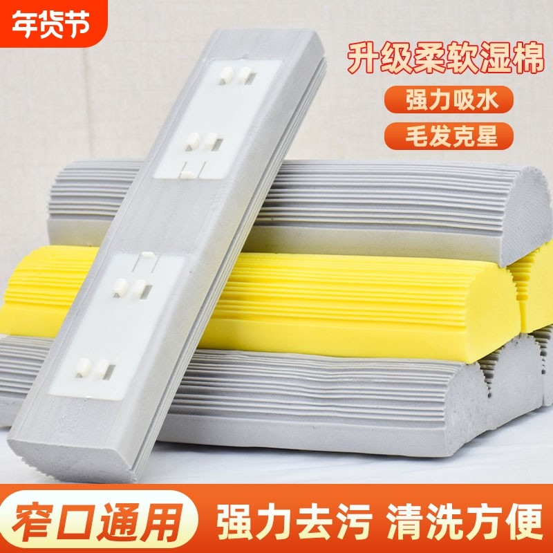 胶棉拖把头家用拖地墩布对折吸水替换装海绵拖把替换头宽窄口通用