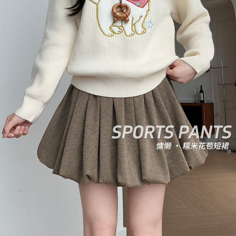 咖色半身百褶裙女花苞裙裤2025秋季新款高腰显瘦百搭糯米A字短裙