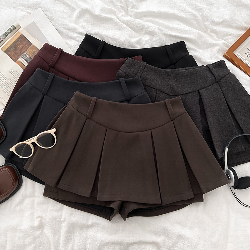 复古辣妹时尚百搭加厚毛呢高腰显瘦半身裙百褶裙裤裙防走光短裙女