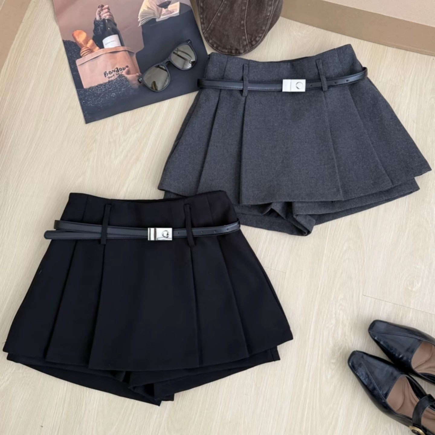 2025秋冬新款毛呢百褶半身裙女配腰带韩版简约通勤百搭短裙子裙裤