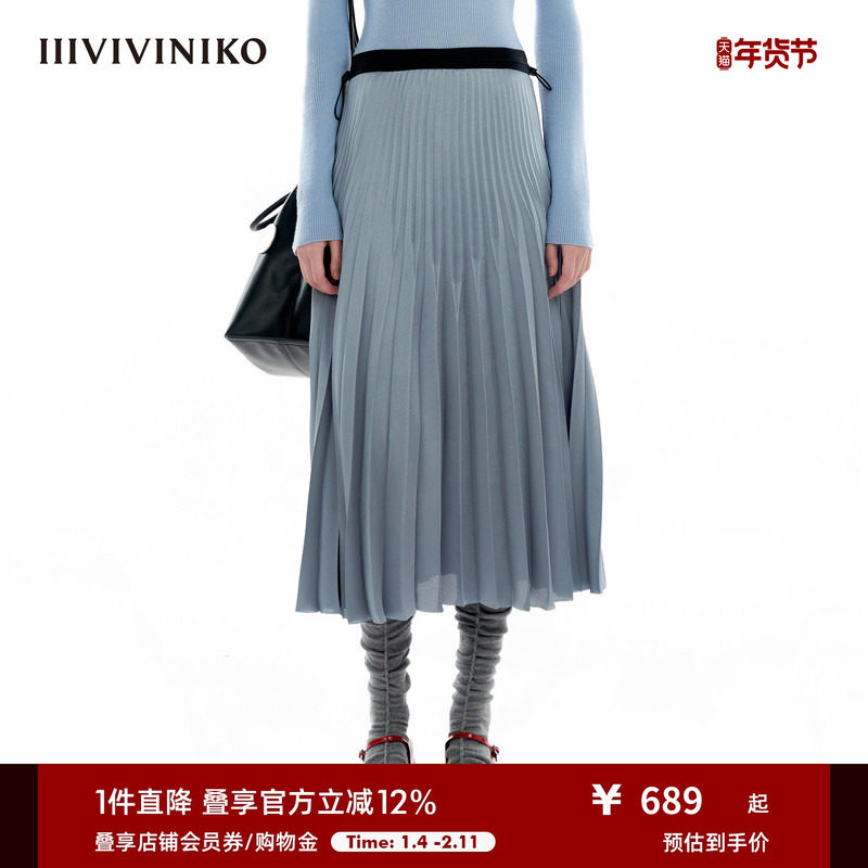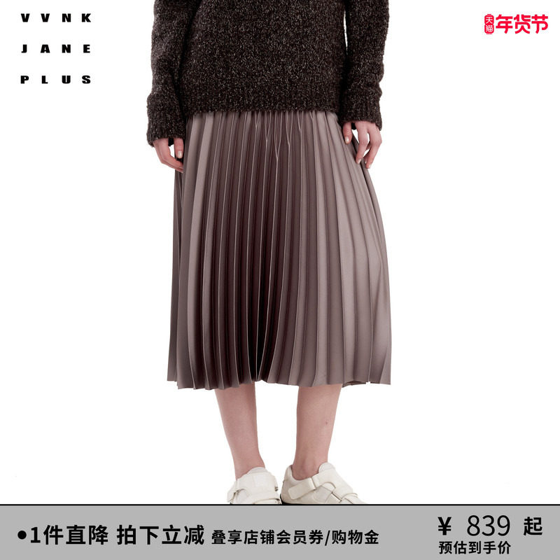【王霏霏同款】VVNK JANE PLUS秋新款宽松缎面百褶半身长裙女
