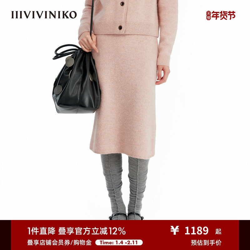 IIIVIVINIKO冬季新款羊毛夹花呢直筒半身长裙女C443838647E