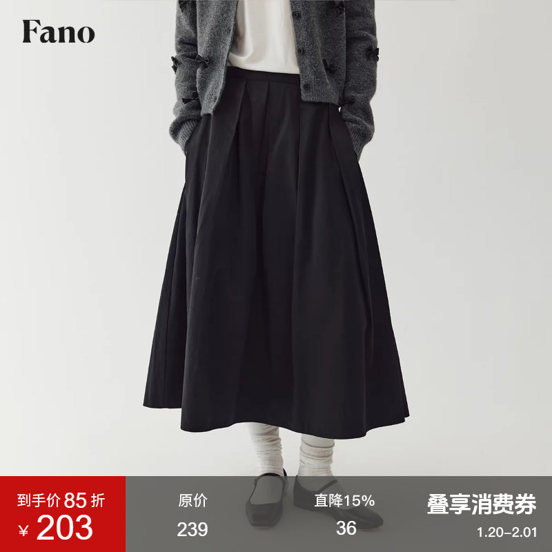 范洛Fano 芭蕾学院风叠褶A字伞裙女2026春季新款高腰黑色半身长裙