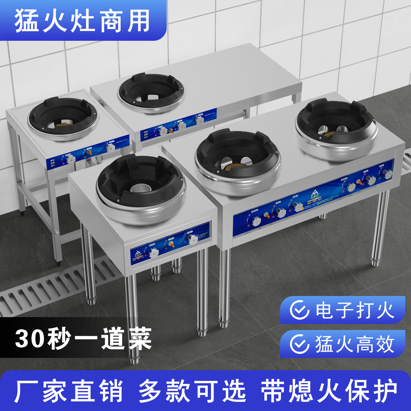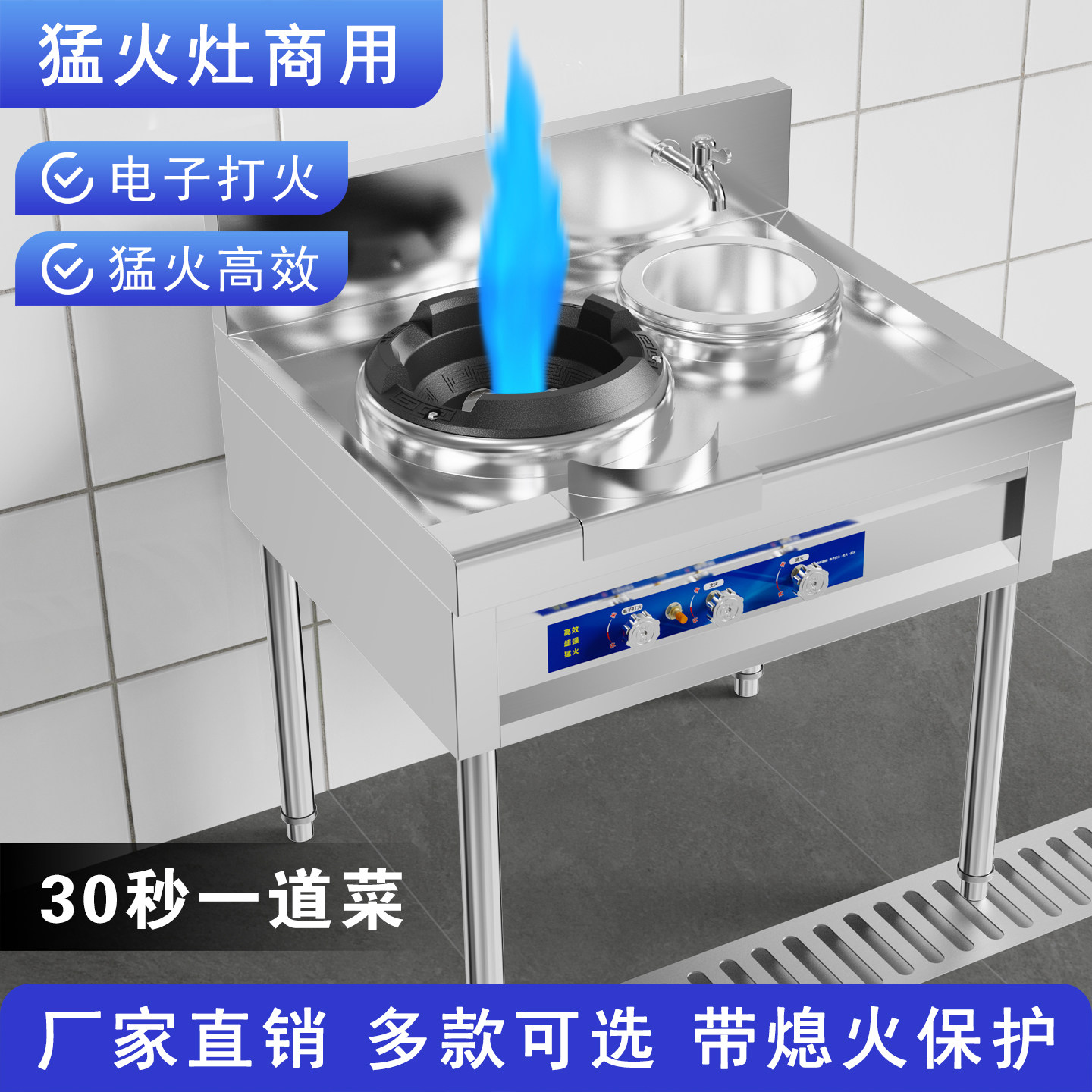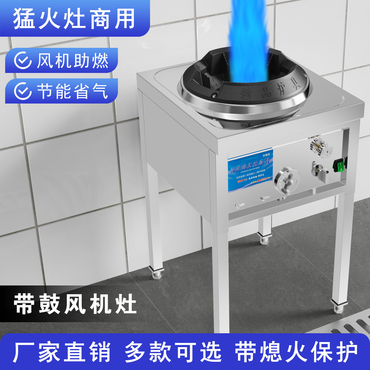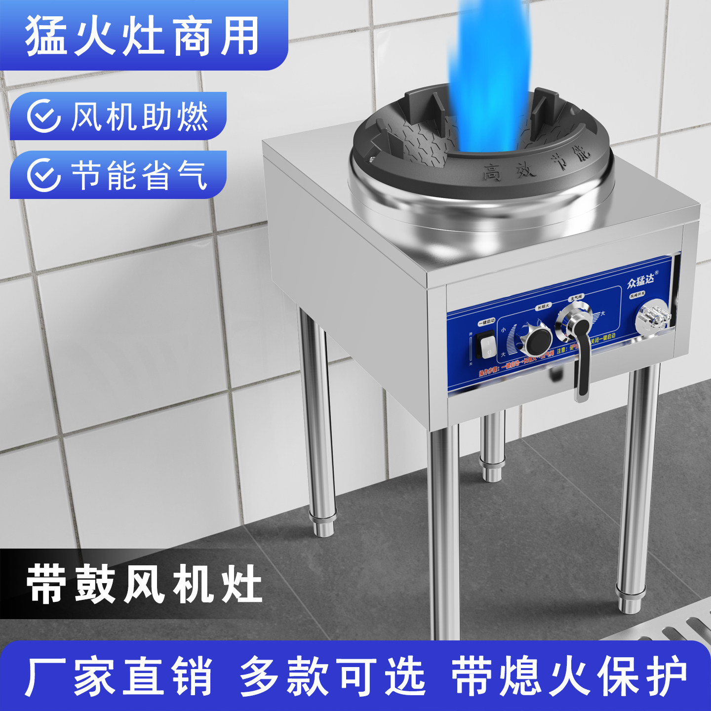 商用猛火灶带鼓风机煤气灶台单灶液化天然气低压饭店双头燃气汤炉