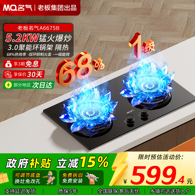 名气燃气灶5.2kw猛火家用双头煤气天然气液化气灶具6675老板出品