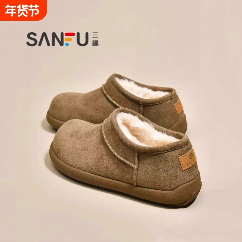 三福真皮小土豆勃肯鞋雪地靴女2025冬季新款厚底加绒加厚保暖棉鞋
