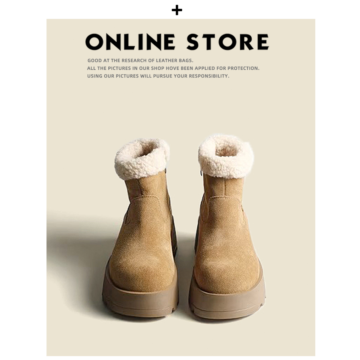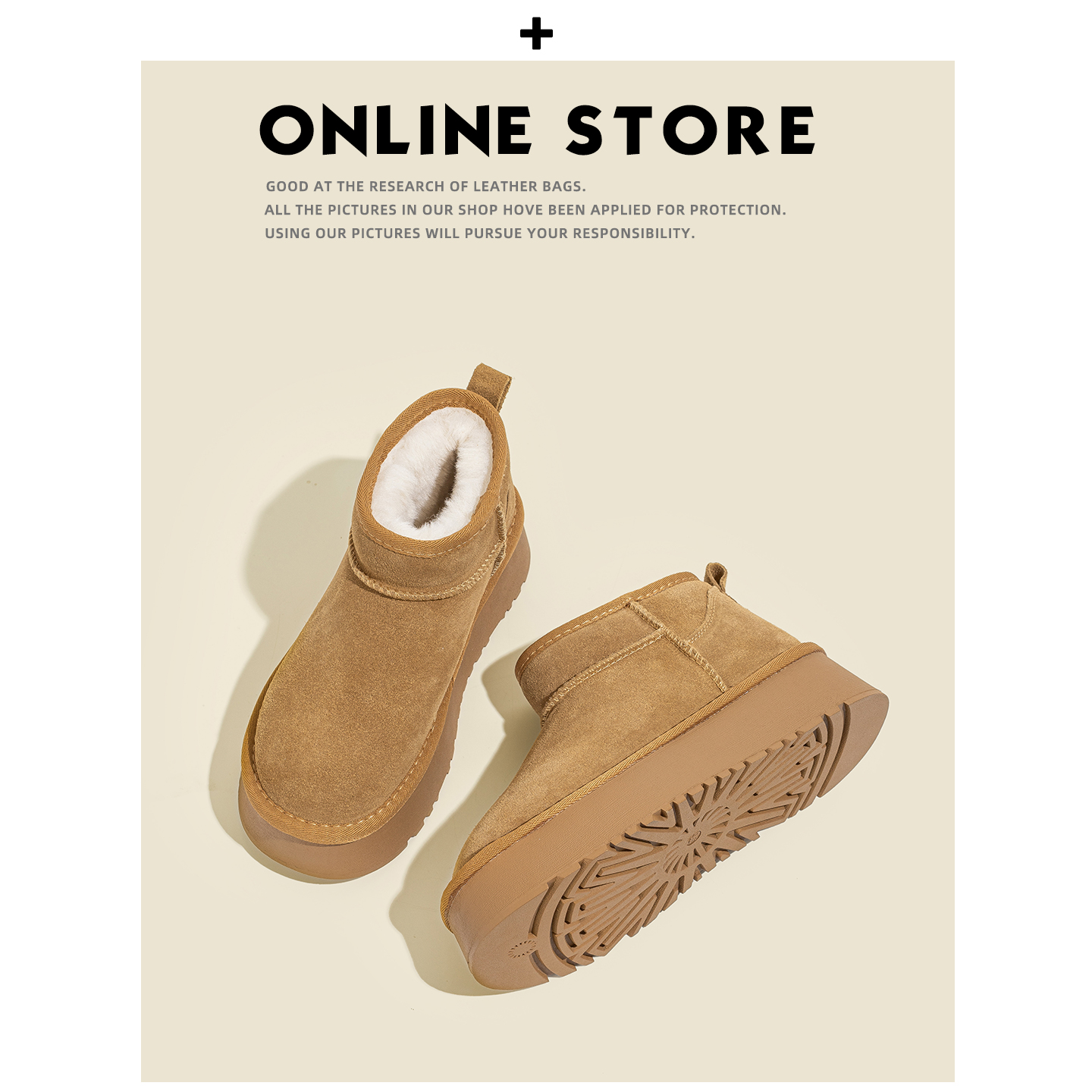 miu家厚底雪地靴女冬季真皮短靴羊毛侧拉链增高厚底加绒毛毛棉鞋
