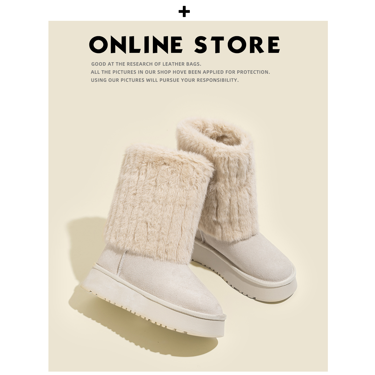 真皮版!中筒雪地靴女2025新款冬季保暖棉鞋东北加绒厚底雪地棉靴
