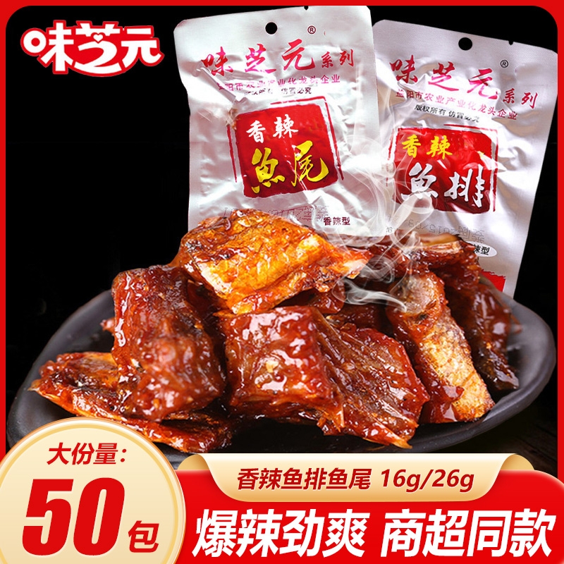 味芝元鱼尾香辣鱼排16g*50包湖南特产辣小吃零食香辣麻辣鱼块鱼尾