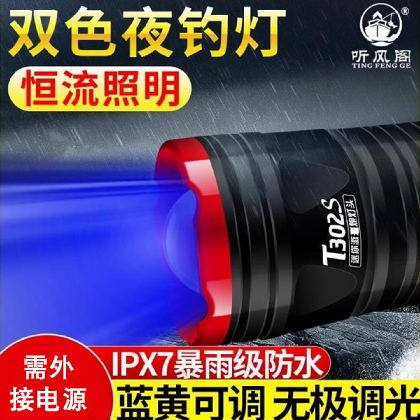 听风阁夜钓灯302S 超亮蓝黄光氙气大功率不伤眼T301S小型钓鱼灯