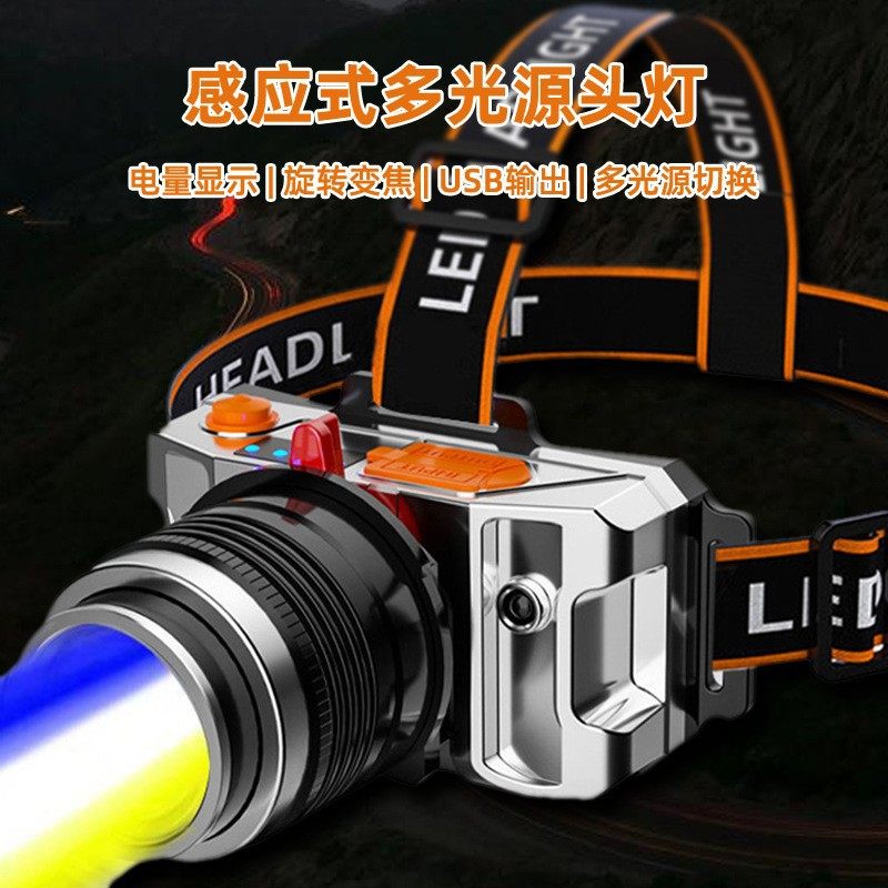 LED头灯强光感应矿灯充电远射3000超亮头戴式手电筒米氙气夜钓灯