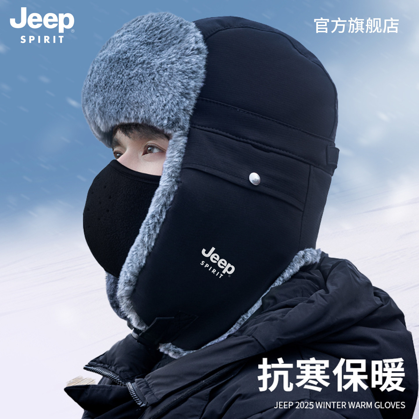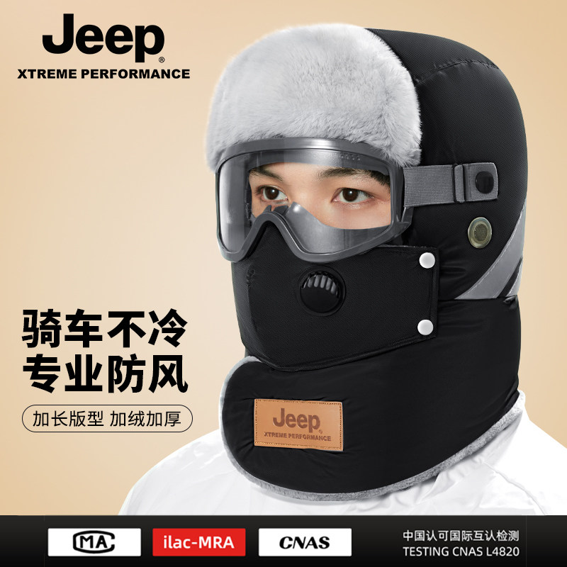 jeep吉普冬天帽子男士电动车保暖神器加厚棉帽防风防寒冬季雷锋帽
