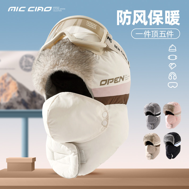 帽子女冬季2025防风面罩头套骑行加绒厚保暖防寒冬天冷帽男雷锋帽