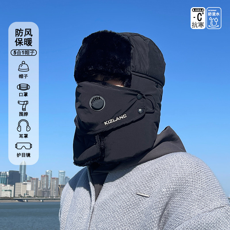 帽子男士冬季雷锋帽男款棉帽防风防寒骑行加厚保暖护耳围脖头套帽