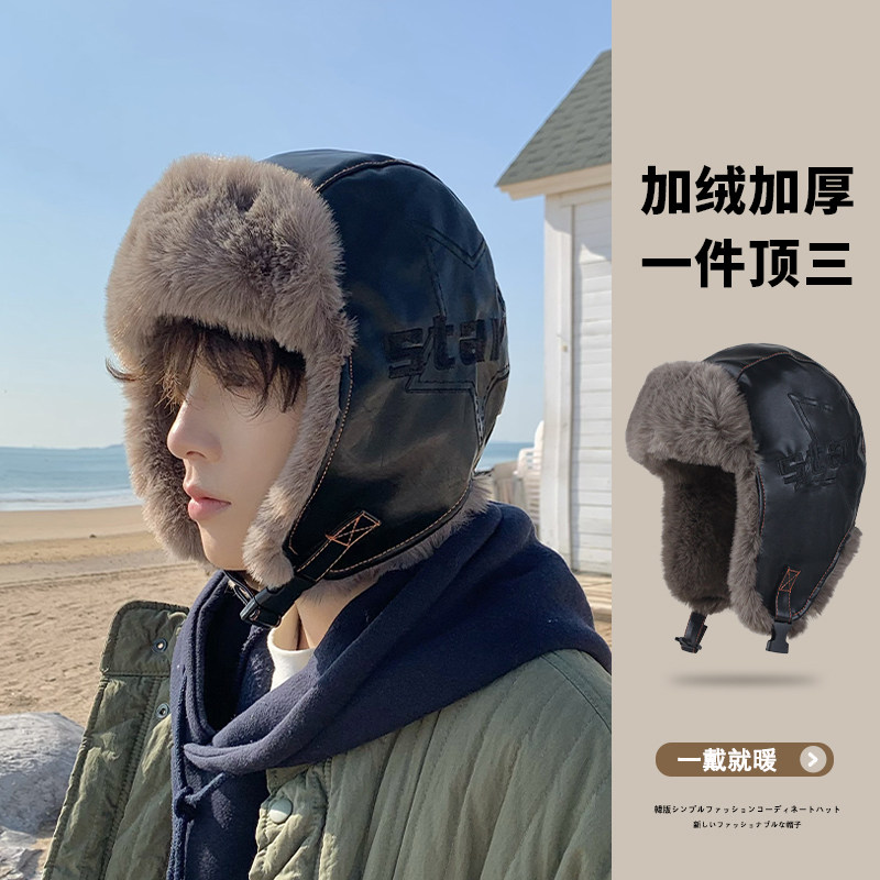 帽子男冬季雷锋帽男款冬加绒骑车保暖秋冬护耳东北防寒男生飞行员