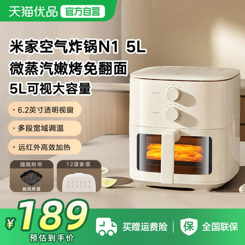 小米米家空气炸锅5L N1家用嫩烤可视免翻面大容量智能电烤箱炸锅