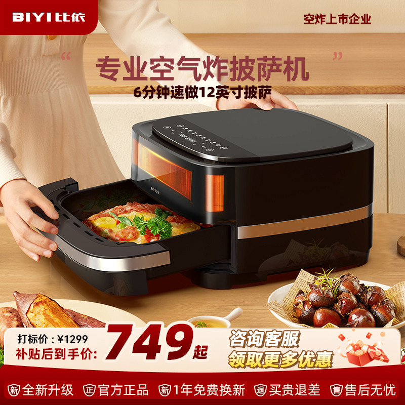 比依空气炸锅新款家用大容量便捷式披萨机多功能可视化智能电烤箱
