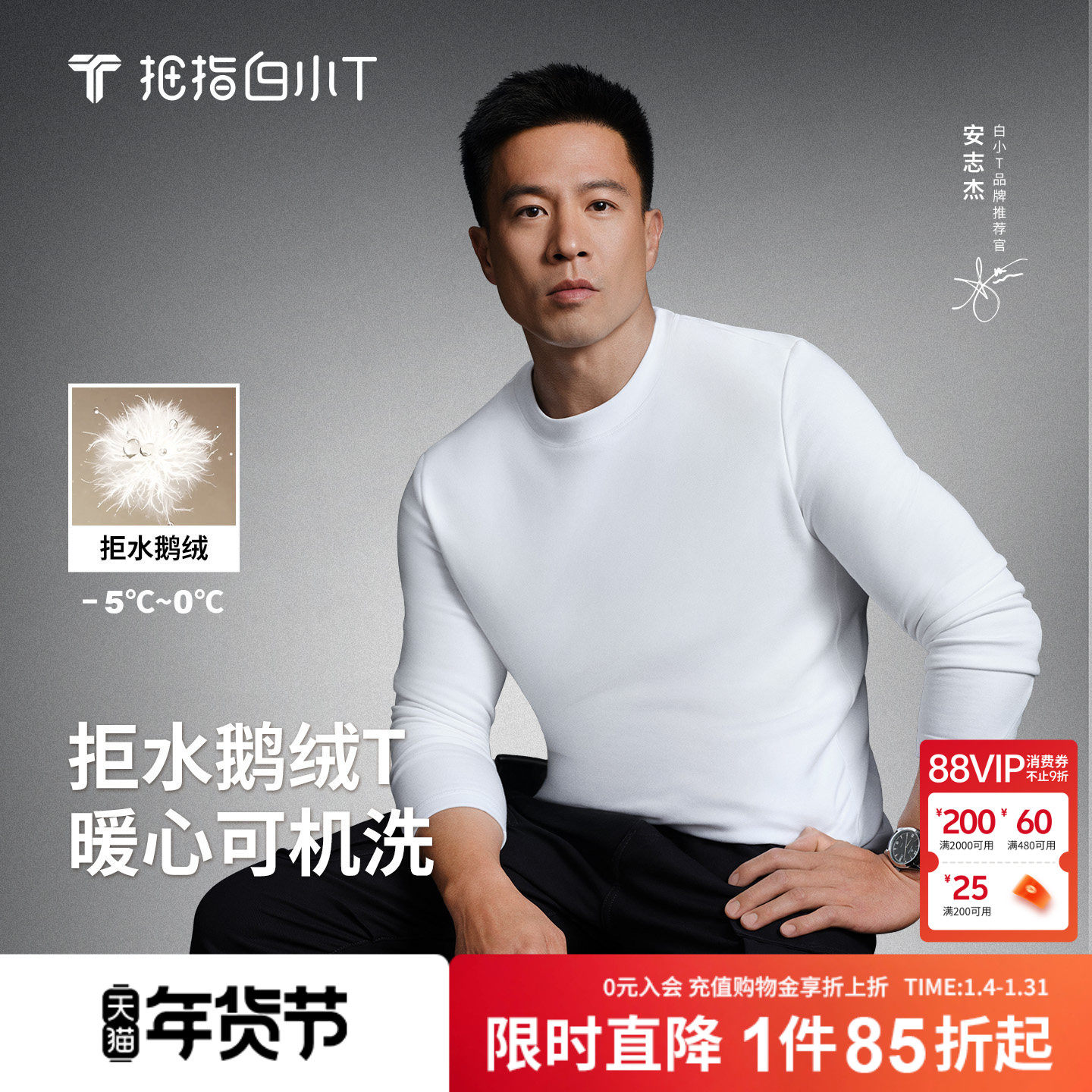 拇指白小T秋冬款男士热力加绒长袖T恤保暖内搭打底舒适透气体恤衫