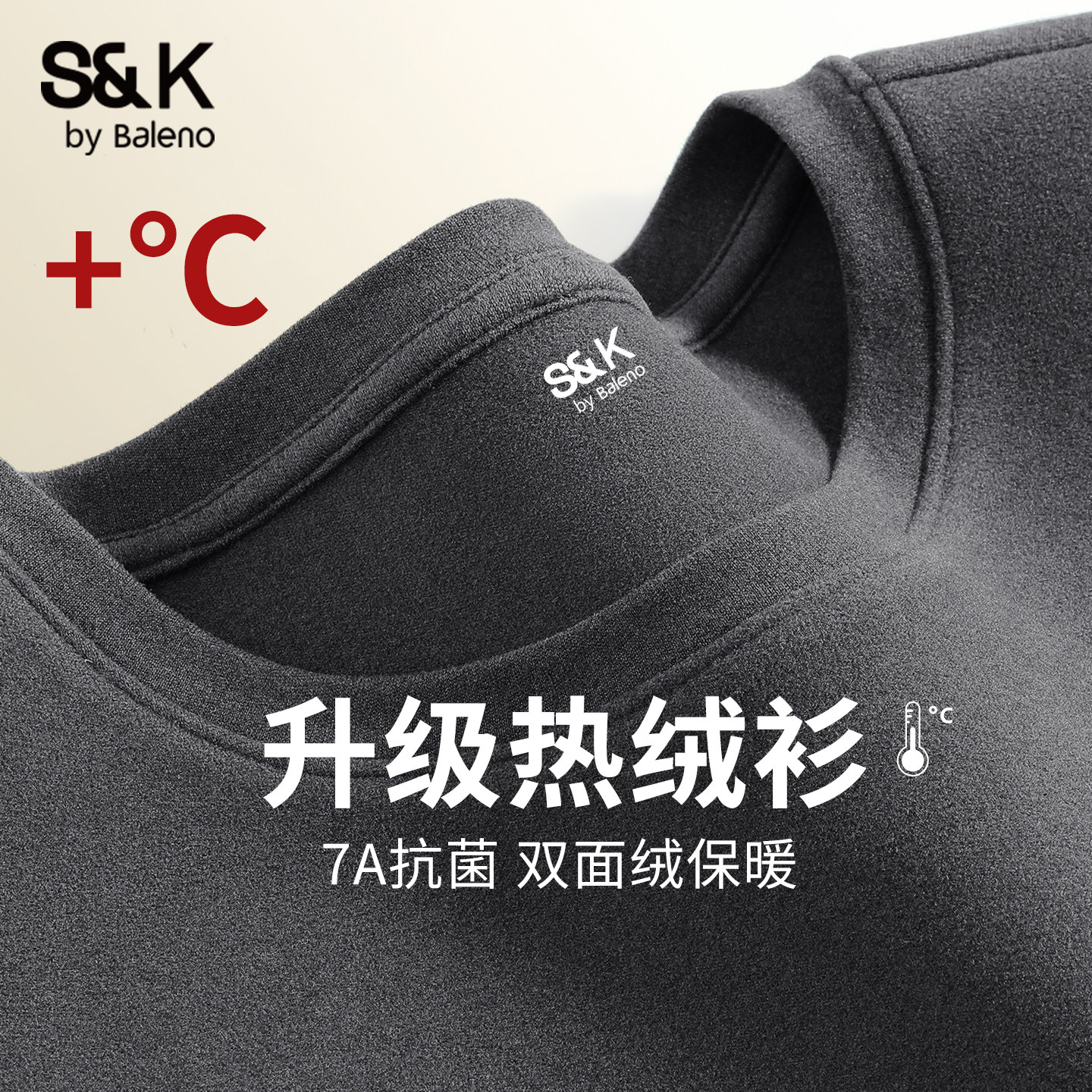 班尼路S&K双面绒长袖t恤男秋冬季保暖圆领打底衫内搭男士加绒体恤