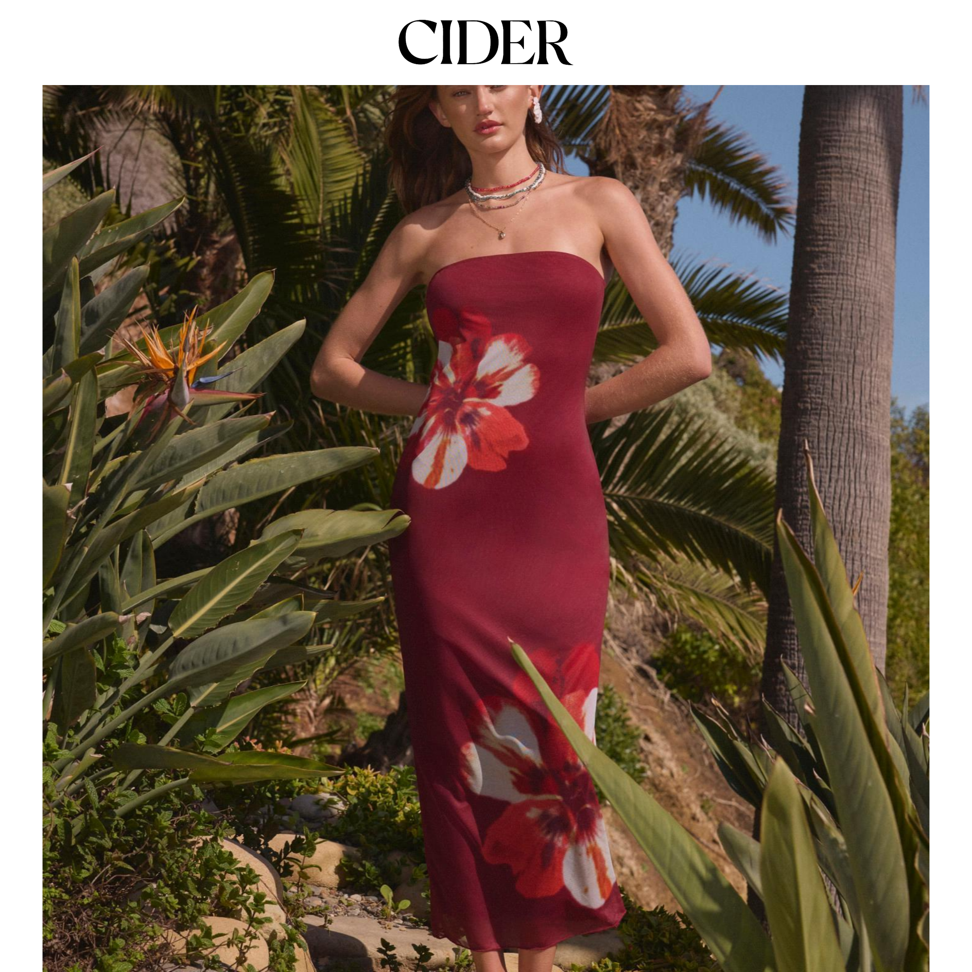 CIDER 夏季女装无肩带碎花长款抹胸连衣裙 114195621