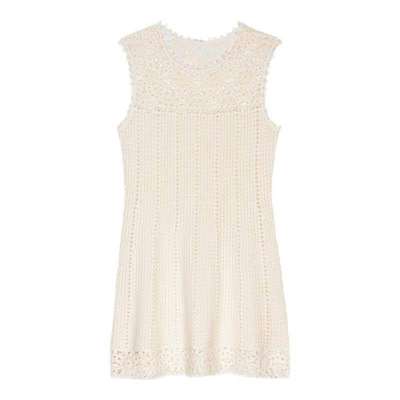 Maje2025春夏女装法式时尚白色镂空花朵修身无袖短款针织连衣裙