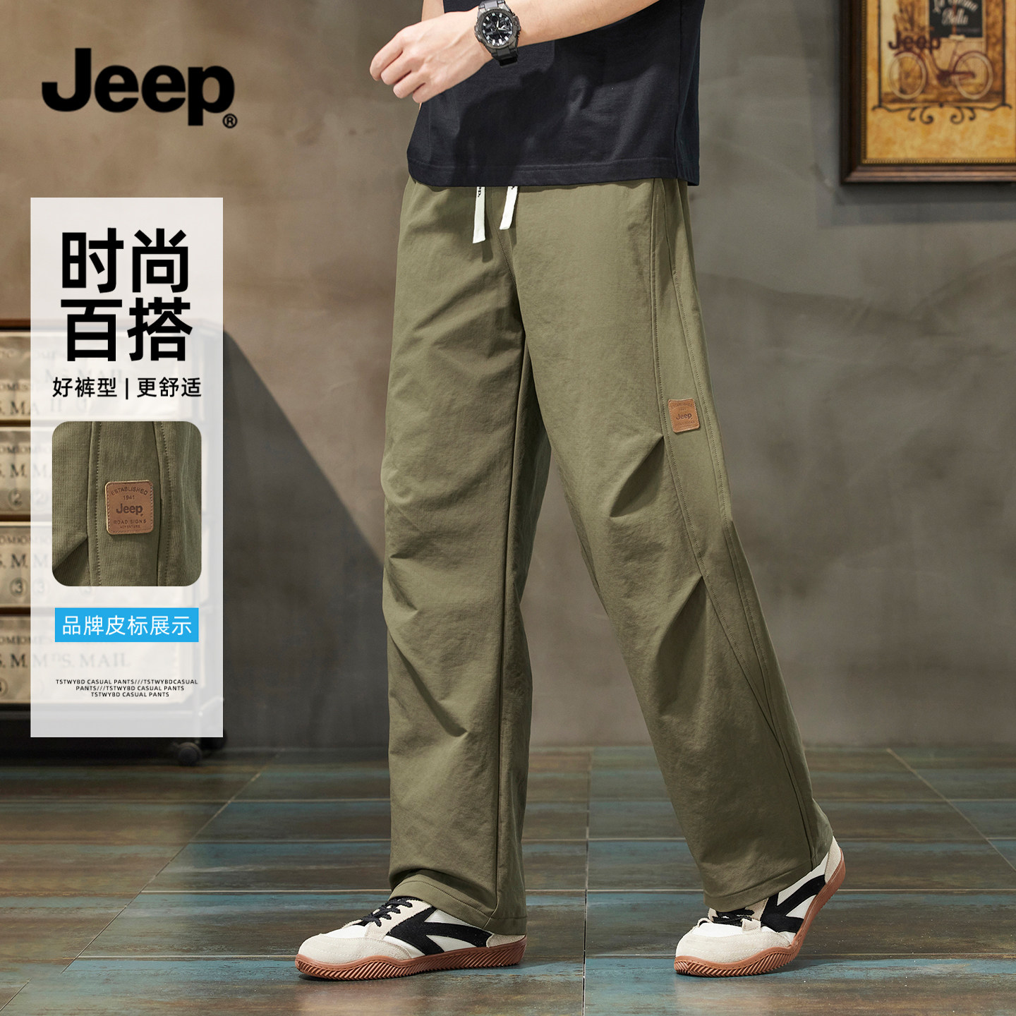 JEEP吉普休闲裤男款春潮流高级感男士直筒裤美式痞帅风百搭长裤男