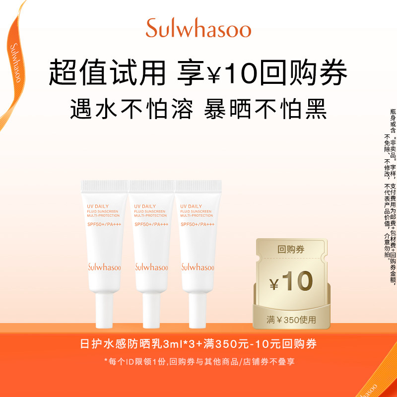 【顺手买一件】雪花秀日护水感防晒乳3ml*3+满350-10券