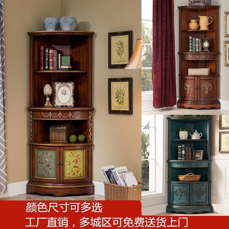 美式实木复古三角高柜墙角柜欧式转角柜角落书柜地中海转角柜包邮