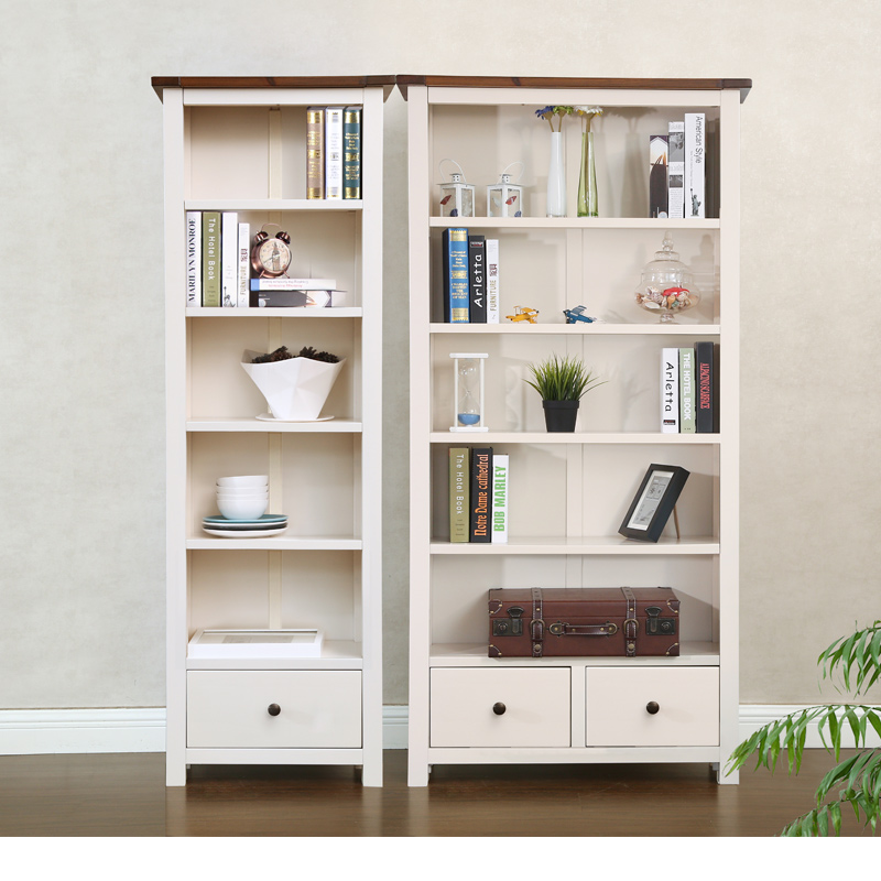 美式乡村实木小书柜 地中海置物简易单个组合儿童书架带抽屉边柜