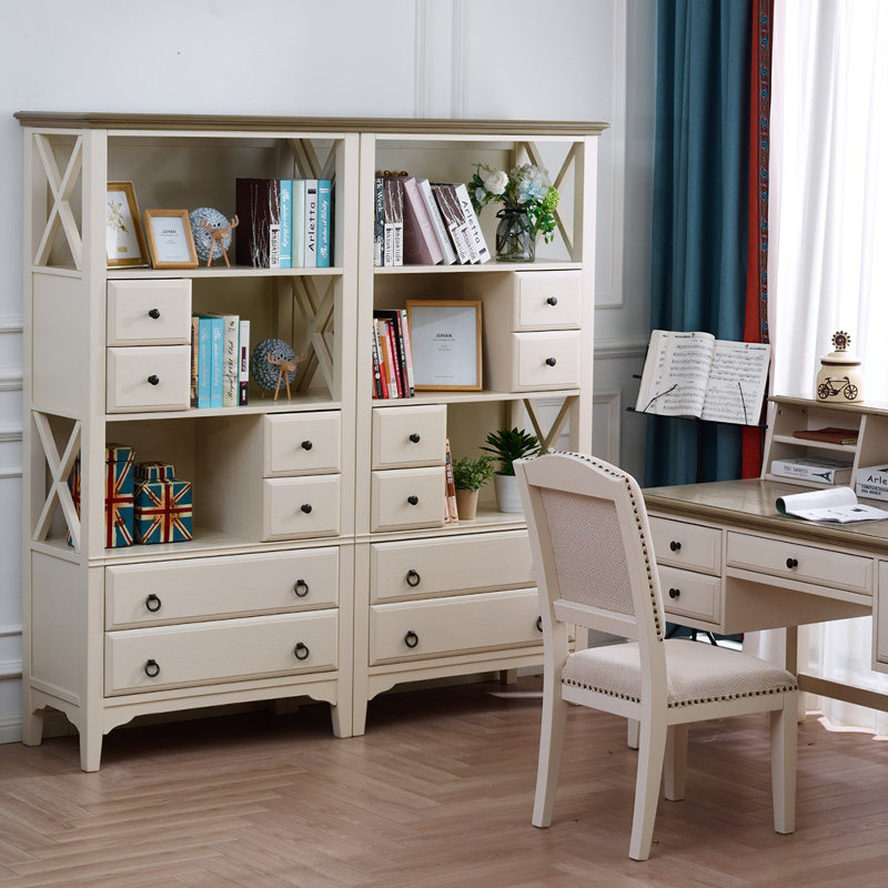 地中海风格家具实木转角书柜储物柜儿童书桌美式田园简约书架组合
