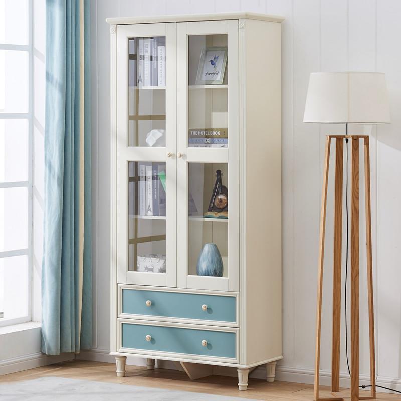 地中海实木复古玻璃书柜美式乡村带门书橱欧式田园酒柜文件柜书架