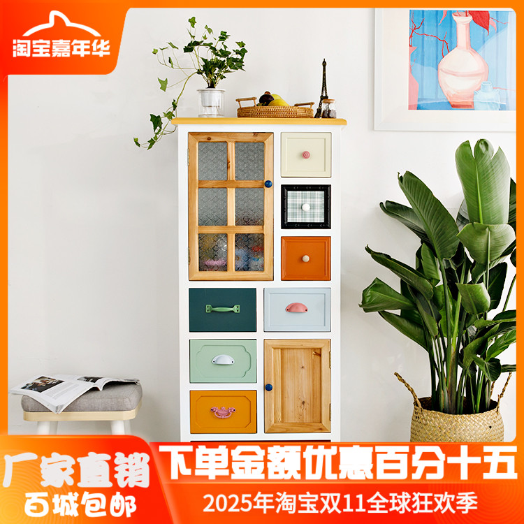 地中海现代简约书柜美式乡村实木餐边柜酒柜田园高柜客厅玄关柜子