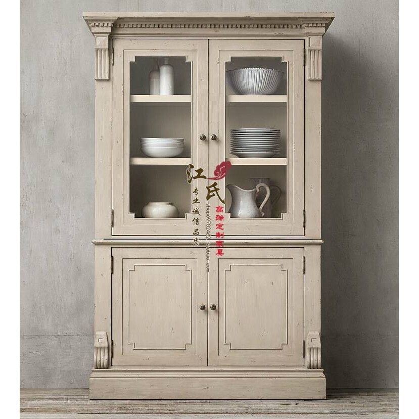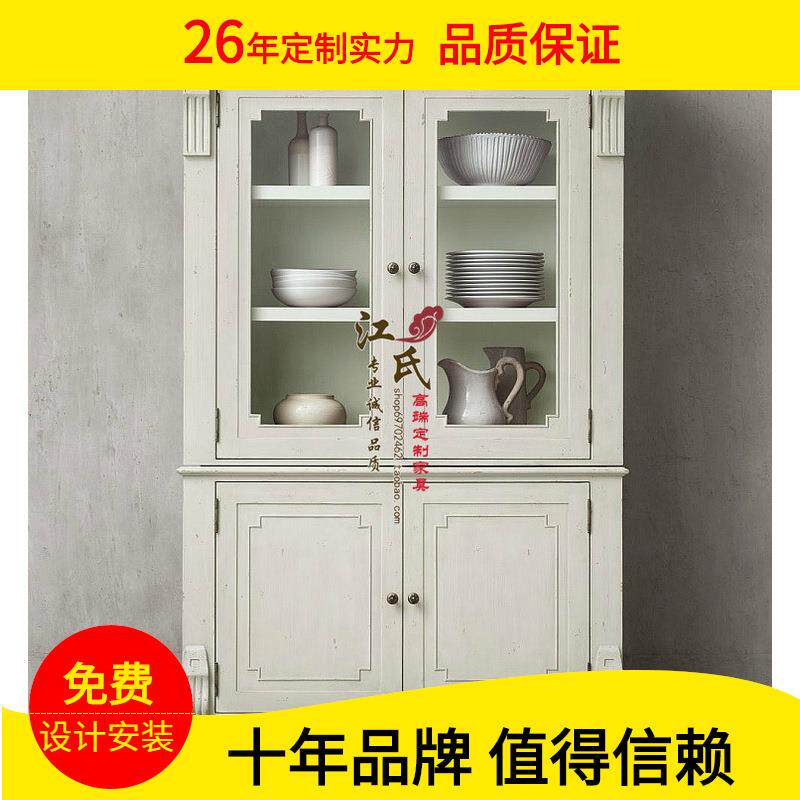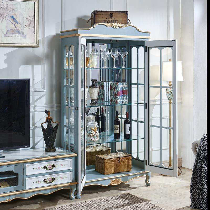 美式乡村实木酒柜电视边柜玻璃展示柜地中海彩绘双门书柜欧式家具