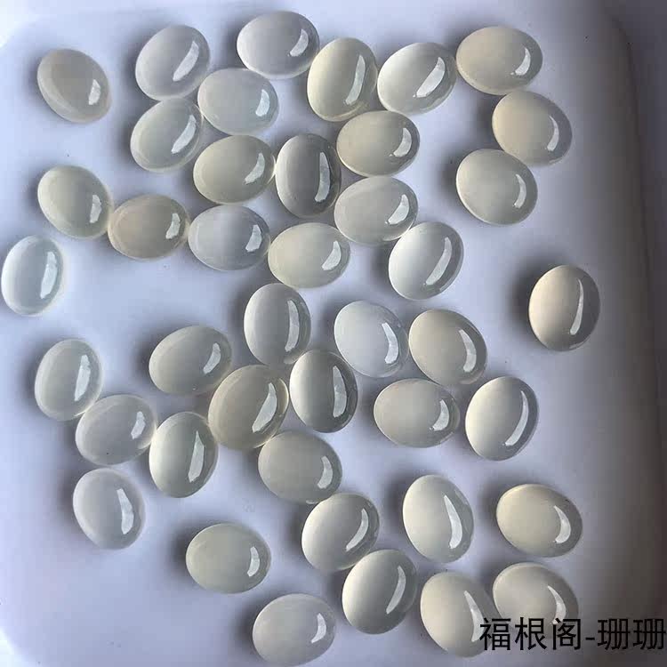10颗装椭圆形平底裸石无孔透冰白玛瑙玉髓戒指项链 戒面镶嵌 diy