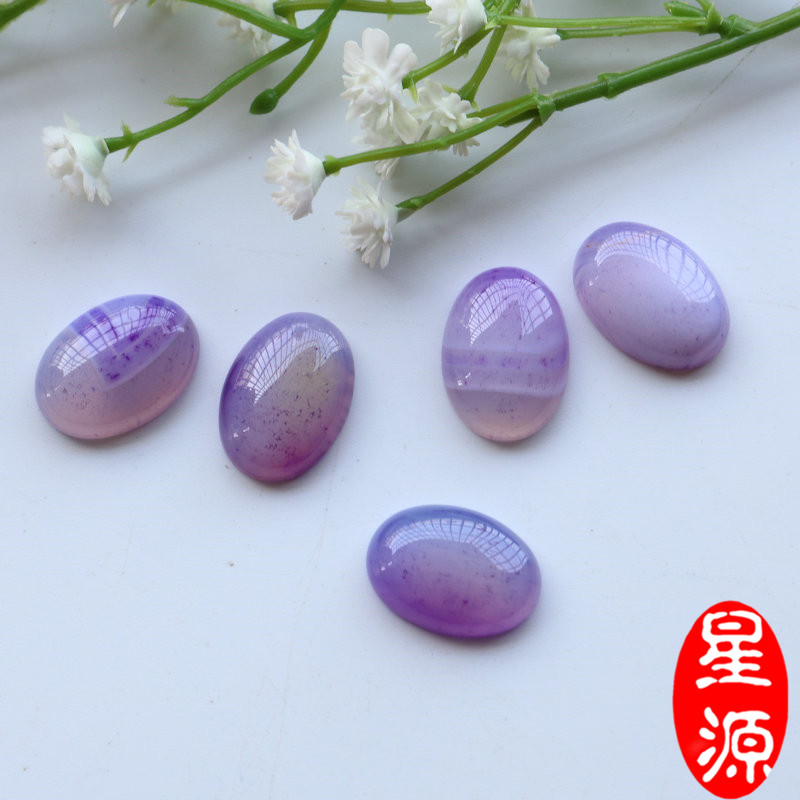 天然平底椭圆紫条纹玛瑙玉髓戒面贴片镶裸石diy戒指吊坠饰品材料