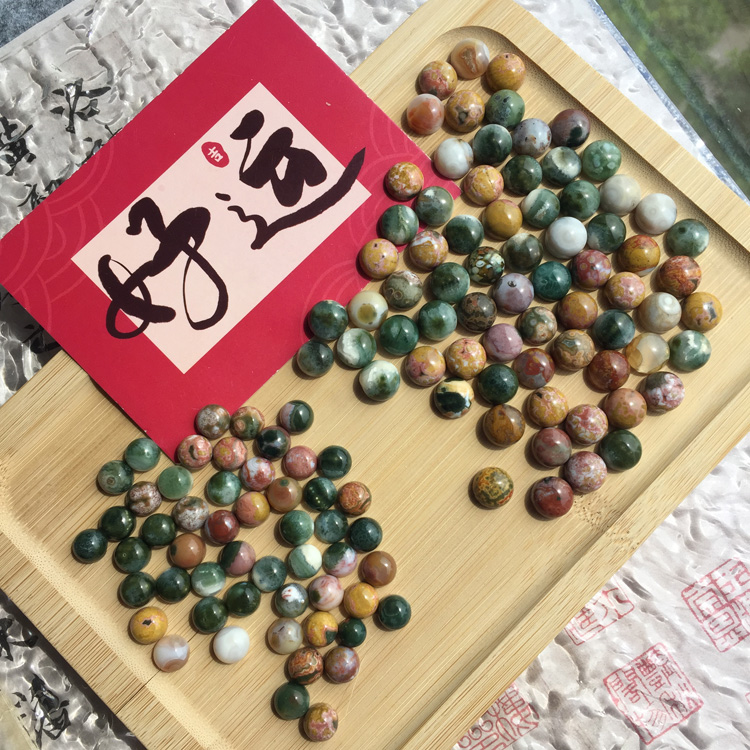 Sweet裸石 天然海洋碧玉Ocean Jasper圆形蛋面戒面 鱼子纹半玉化