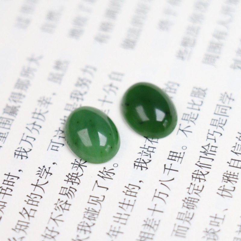 天然和田玉碧玉戒面裸石玉石镶嵌面菠菜绿蛋面椭圆形多规格戒指面
