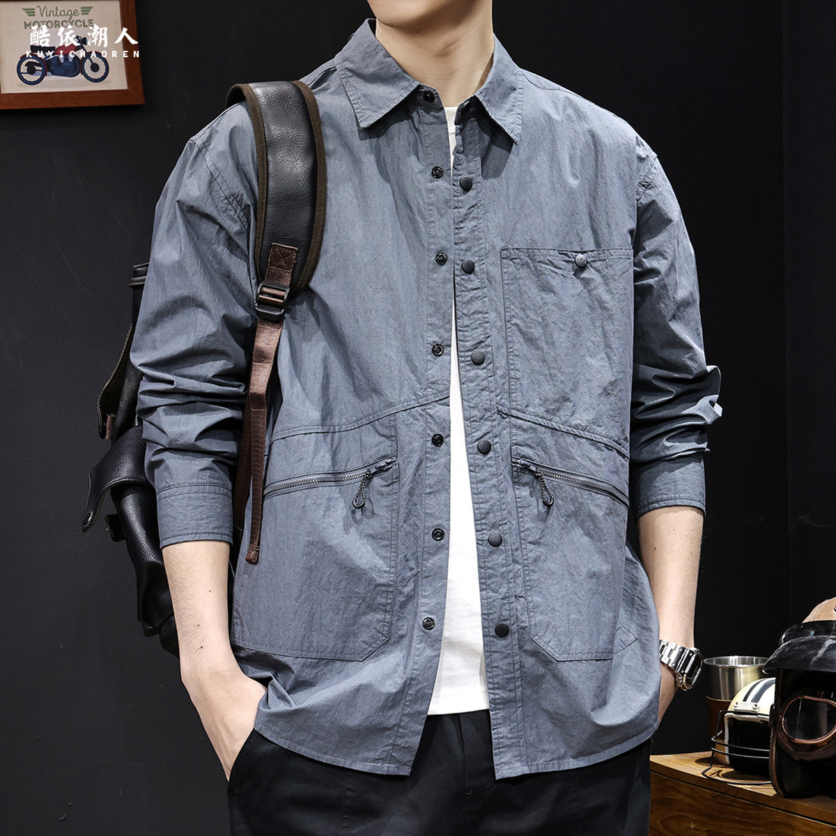 日系复古街头工装衬衫25SS秋季多口袋长袖男衬衣外套男士休闲衬衫