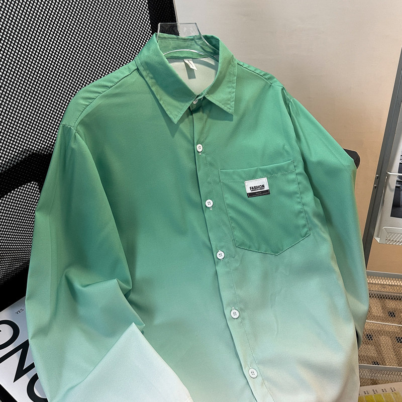 长袖衬衫男士春秋季潮流渐变色宽松衬衣痞帅情侣小众休闲初秋外套