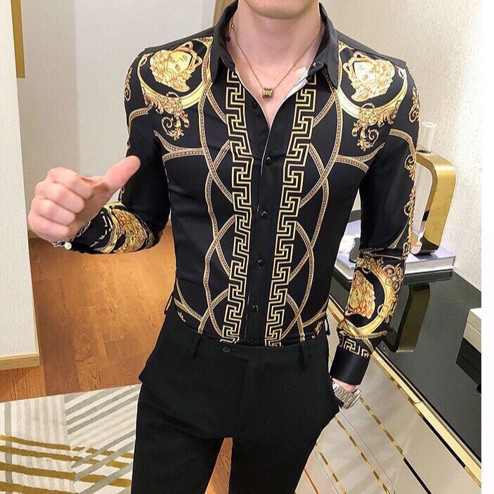 2026春秋季新款男衬衫英伦长袖上衣印花男装痞帅韩版修身潮流衬衣