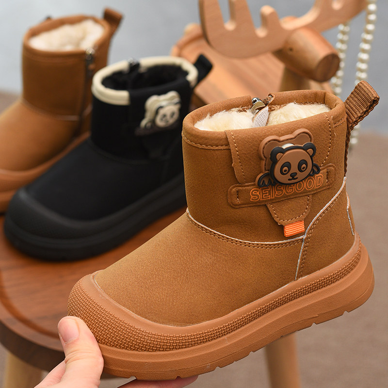 牧童宝宝雪地靴冬季女童小熊猫棉靴男童加绒加厚保暖软底大棉短靴